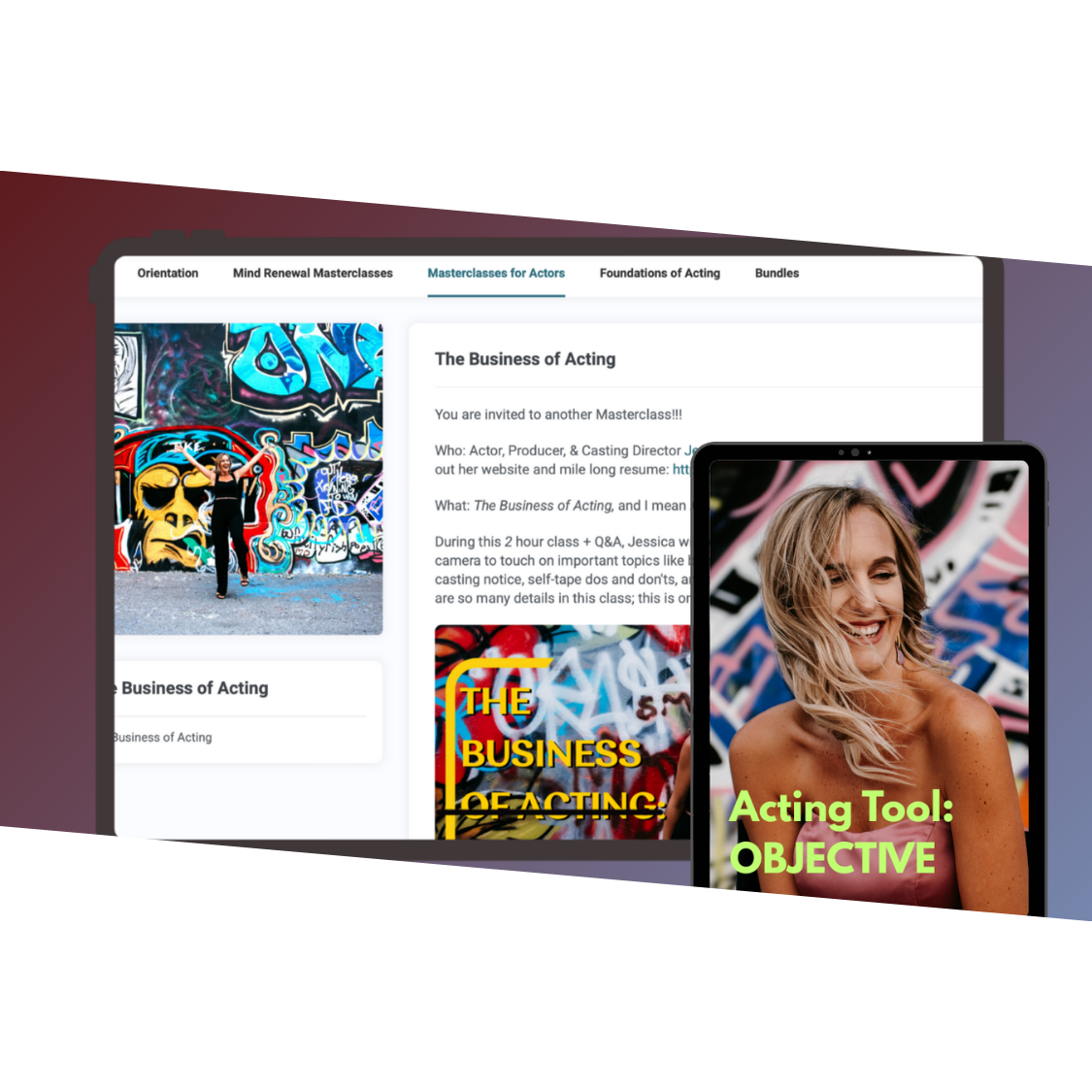 Foundations of acting + the business side of the industry. Lessons include extensive outlines, scripts and sides, downloads, assignments, and next steps.